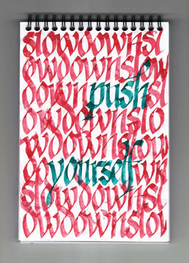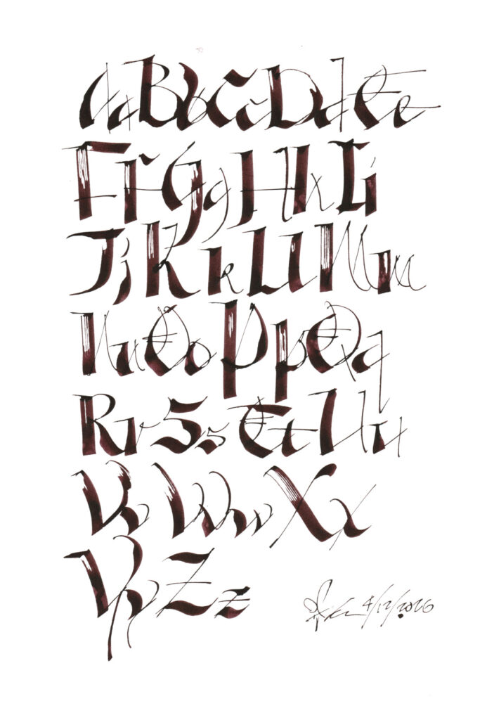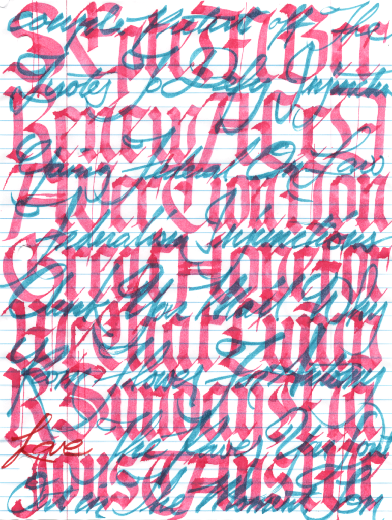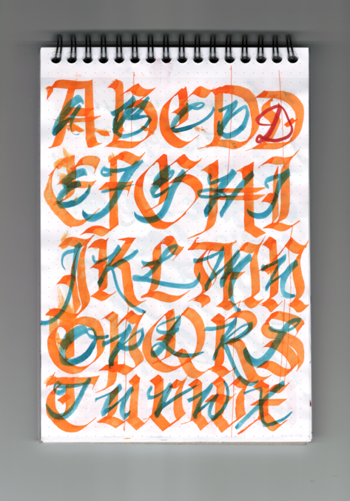 I was curious why Edward Johnston devoted much of his late career exploring Gothicized Italics so I started practicing it. Pretty much throughout the second half of this year. I can’t speak for the master, but for me, it’s the points, and the deep ***spring*** points. Though it makes me awfully close to graffiti. Maybe that’s where this was heading all along.