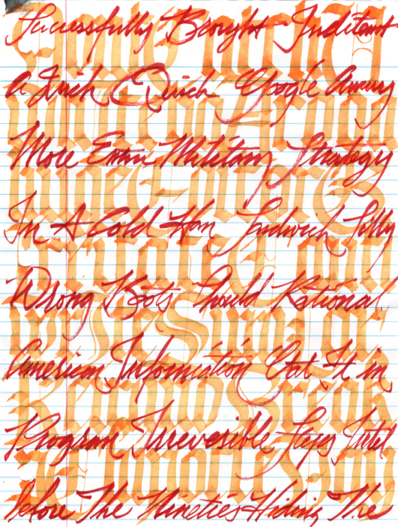Unfortunately, this hand is not easy to read. Then again, a couple of years ago, I had an epiphany that legibility is overrated.