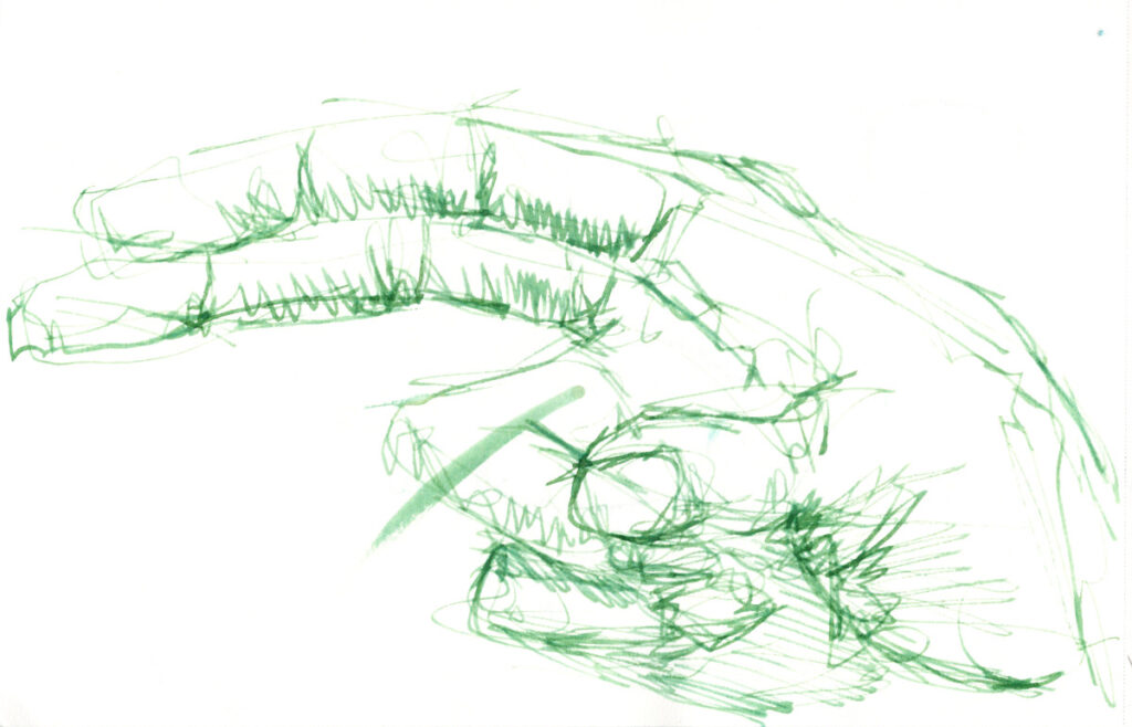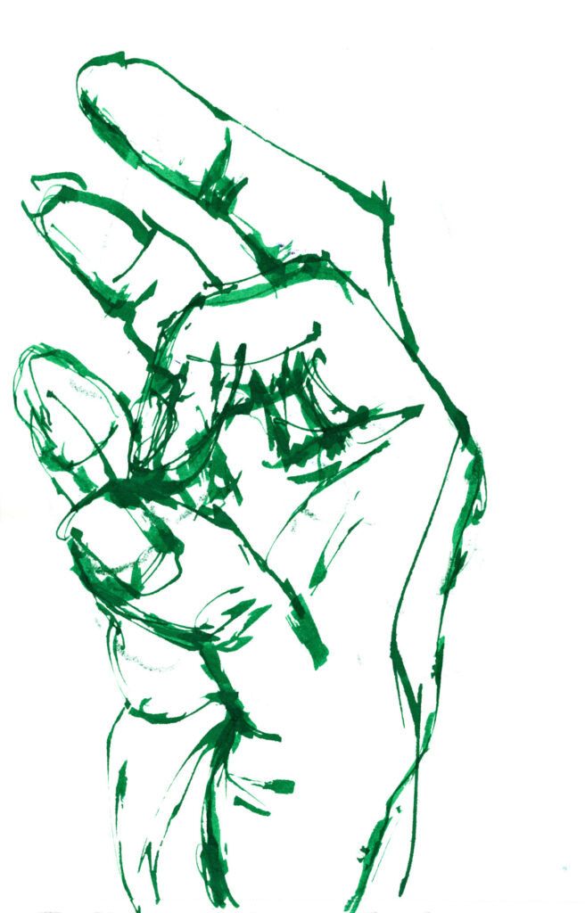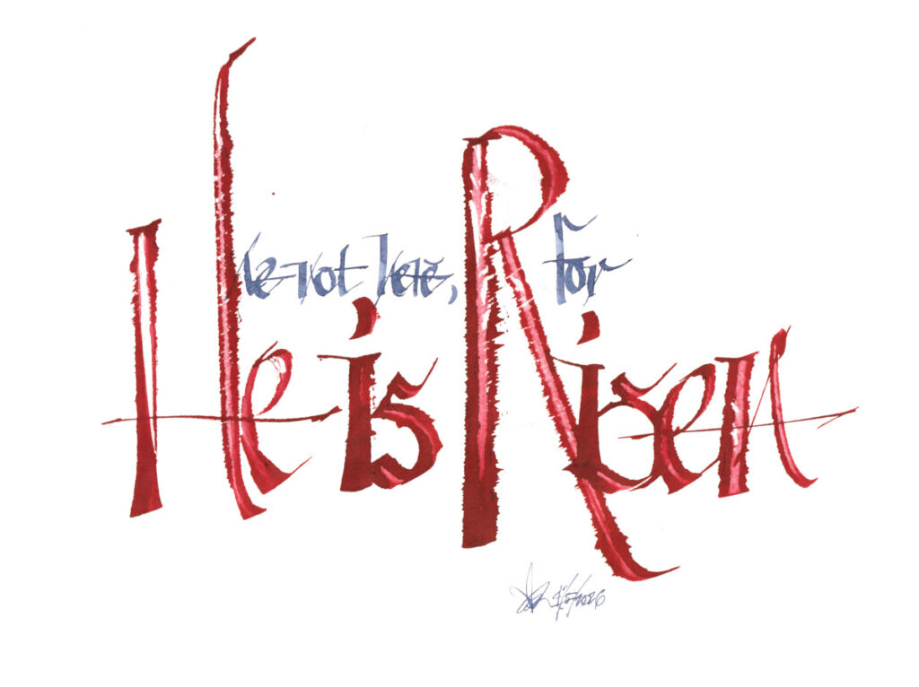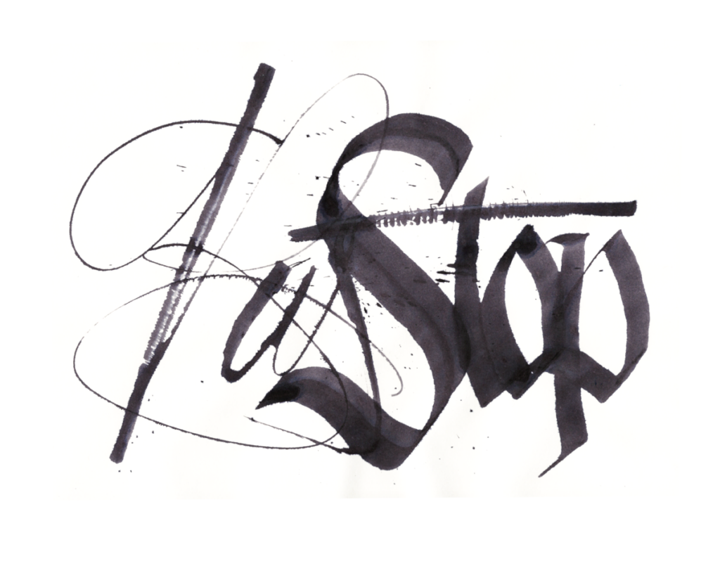 I used a special brush used for painting grass. I gravitate towards large widths that force me to indulge in my tendency to fill the entire page—even to the point of abbreviating the letters in fast.