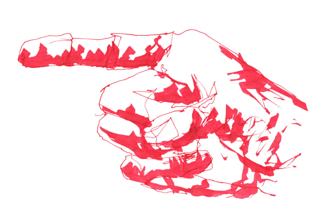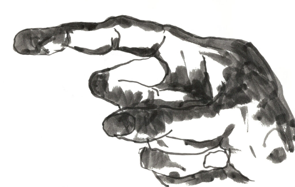 I save the initial washes from my brushes and pens in containers, letting them slowly evaporate into a grey wash, which I used with a ruling pen here I enjoyed the cheeky contradiction of the words Slow Up against a rapid, sloppy cursive.
