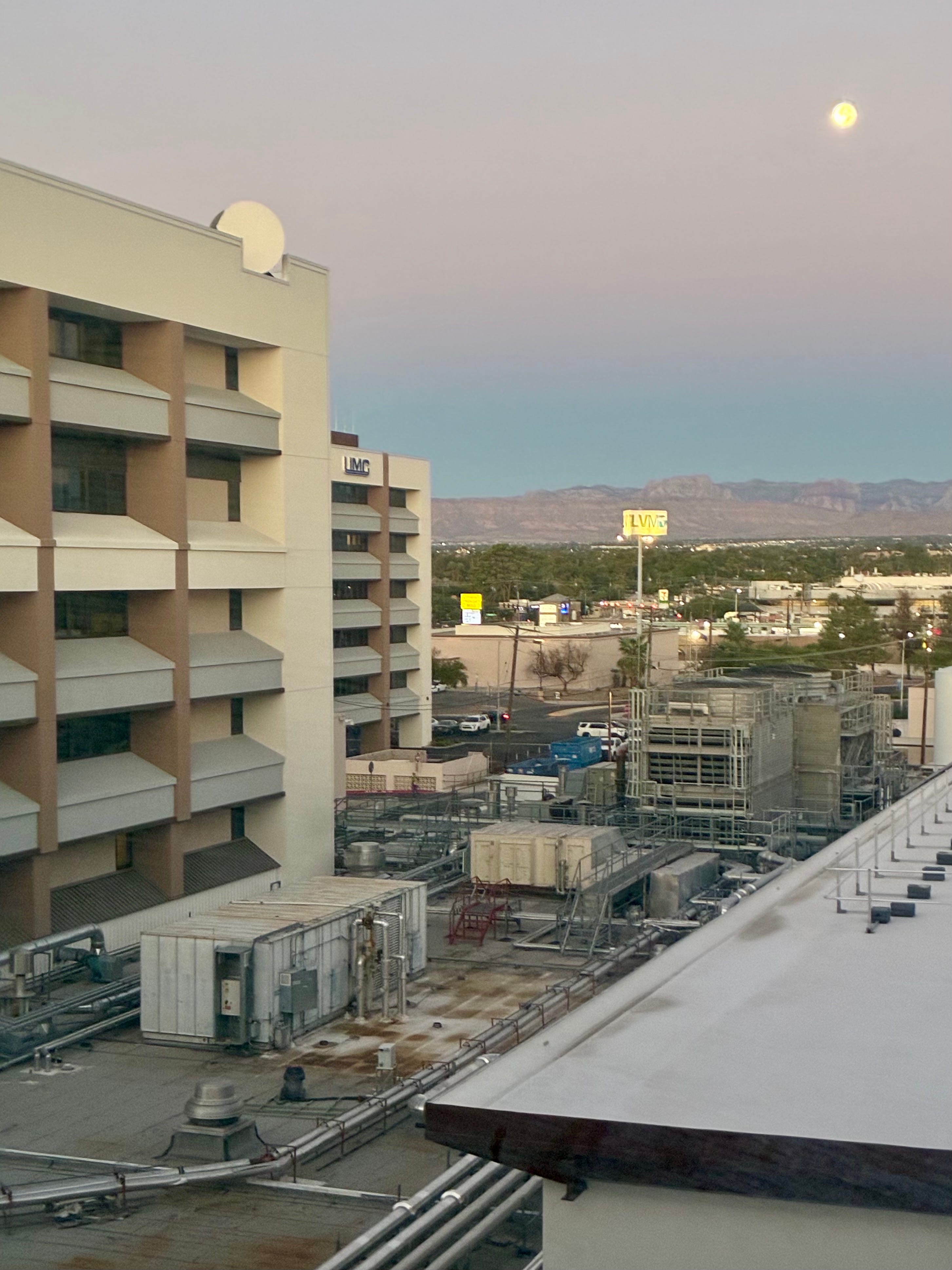 Golden hour never fails. This new room had a streetside view of a residential subdivision. I wonder what it’s like to live in the shadow of the city’s major medical center. I guess you stop hearing the sirens.