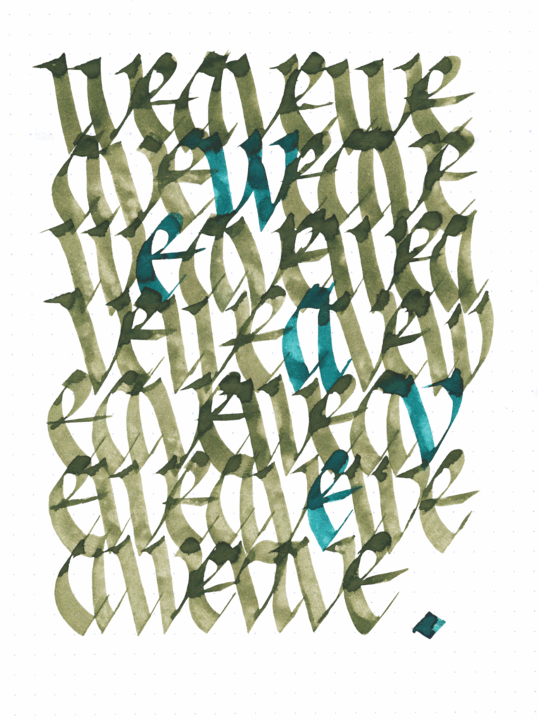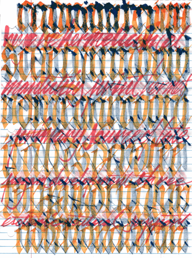 This piece is a direct variant of my August experiments with overlapping Gothicized Italics in a notebook.