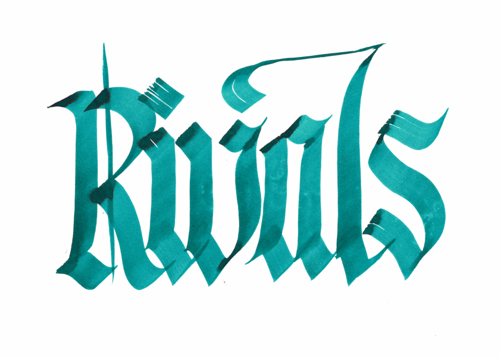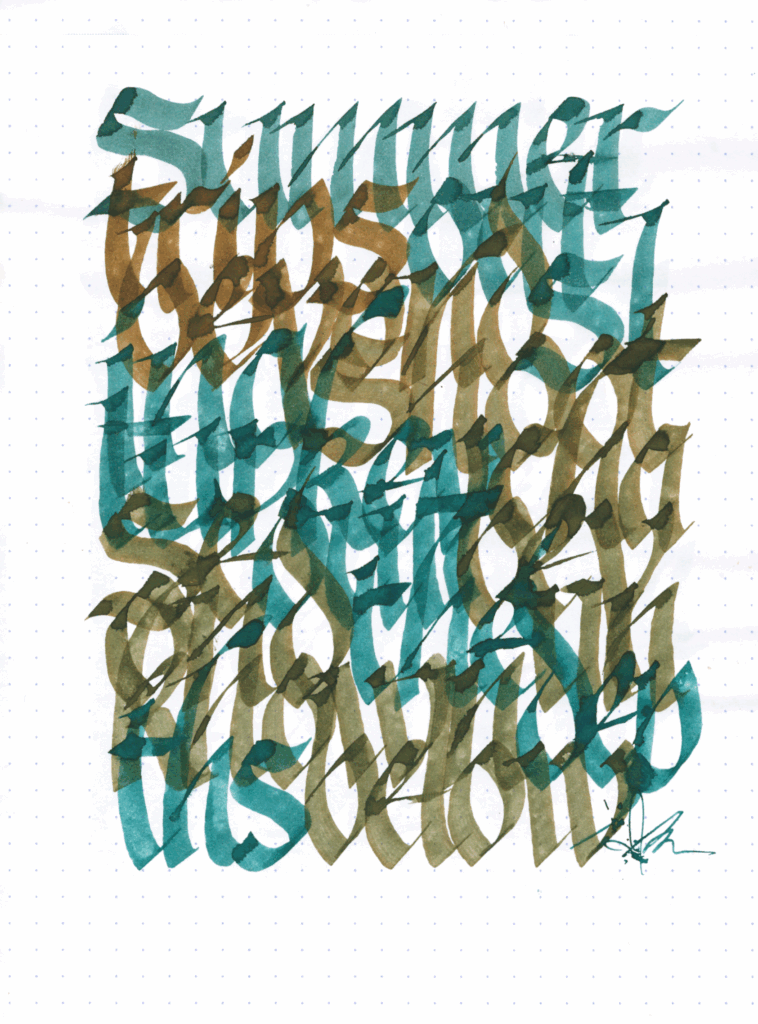 I’ve been playing a lot with Gothicized Italics, so it naturally became a big part of this year’s scripts. This was my last assigment for Inktober since it was more important to complete the daily pieces first.