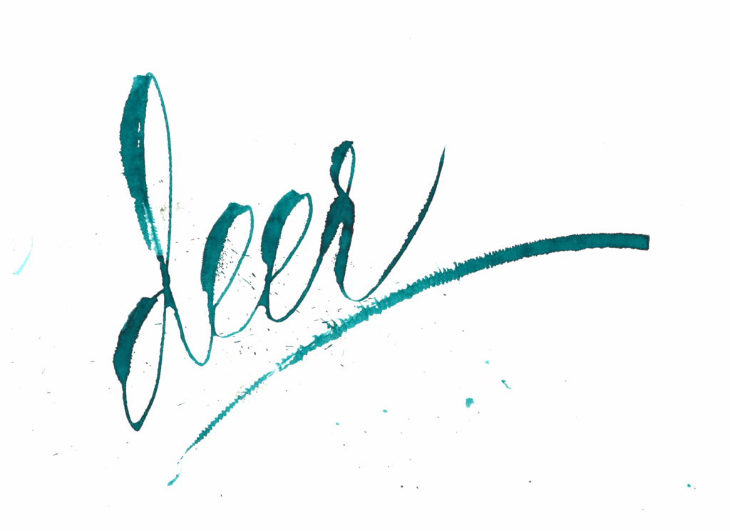 I had a brutal time with this one. I tried to capture the leap of the Deer using cursive, but was unhappy while scanning it. So I tried making a logo. Again unhappy. Finally found something by starting with a lowercase “d”.