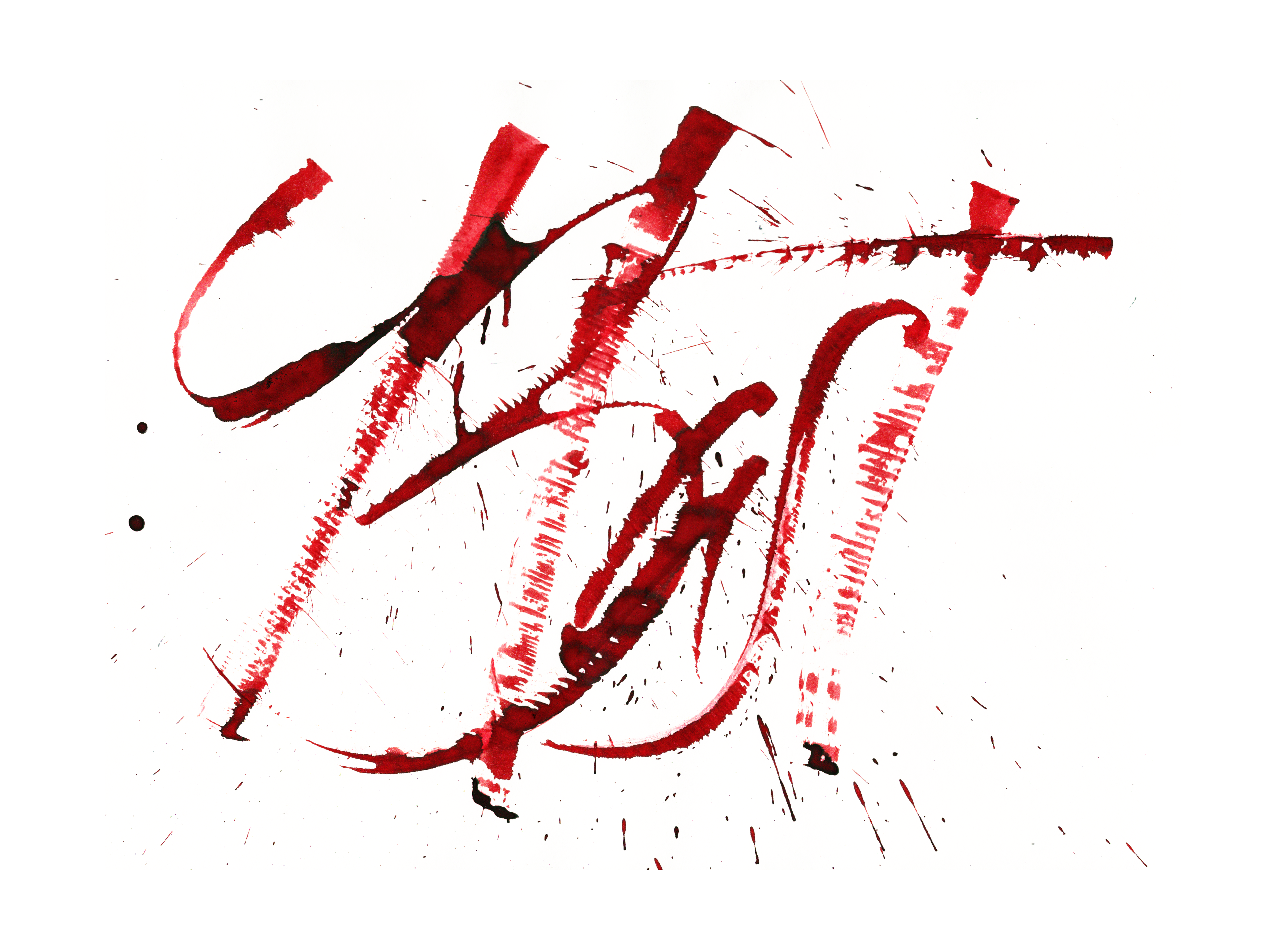 This was done with a dryish brush with old clumpy ink. It made for a great texture on the page, but left a few spot marks on the scanner cause I rushed to get them into the box.